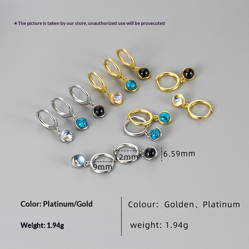 Color: Moonlight earrings/gold, Turquoise earrings/gold, Black onyx earrings/gold, Moonlight earrings/platinum, Turquoise earrings/platinum, Black onyx earrings/platinum